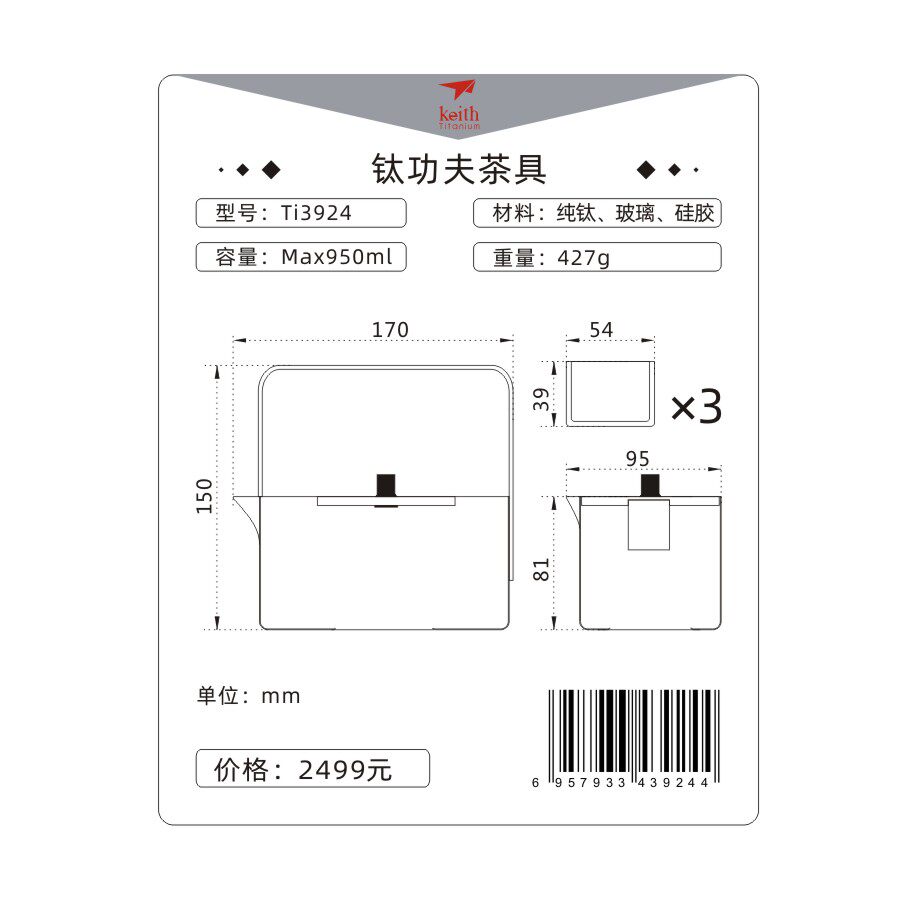 Keith Armour Pure Titanium Four Generations Kung Fu Tea Cup Teapot Tea Tea Set Outdoor Portable Kettle Ti3924-Taobao