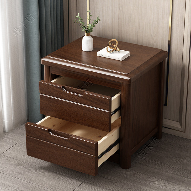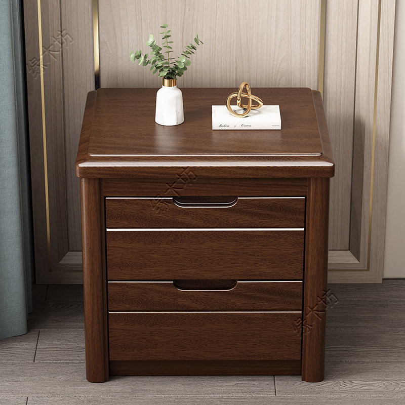 Solid Wood Bed Head Cabinet Walnut Wood Minimalist Modern Lockers Ultra Narrow Mini Light Lavish Bedroom Drawer Bedside Cabinet Whole Dress-Taobao