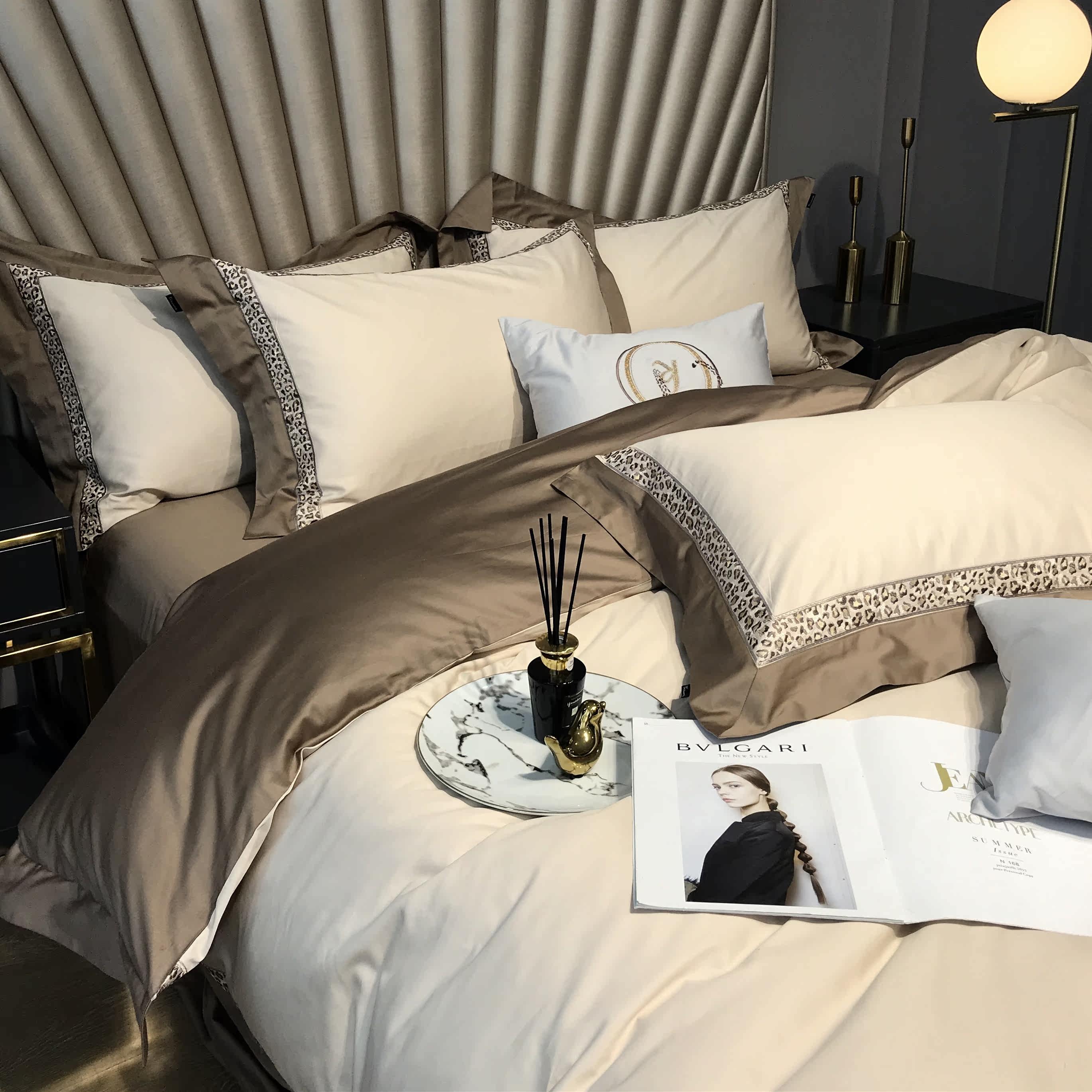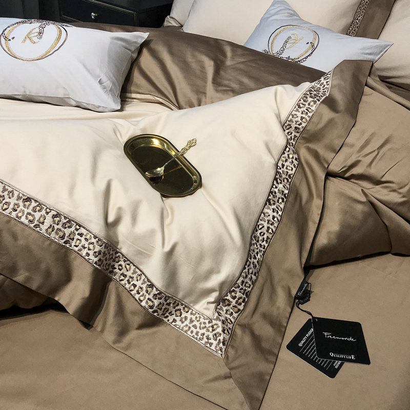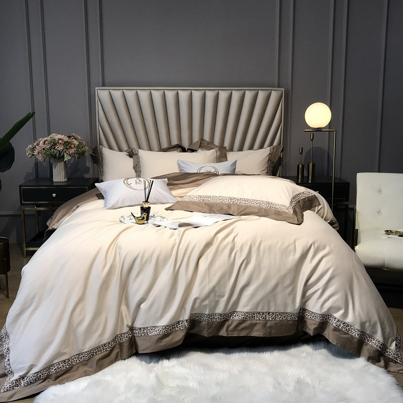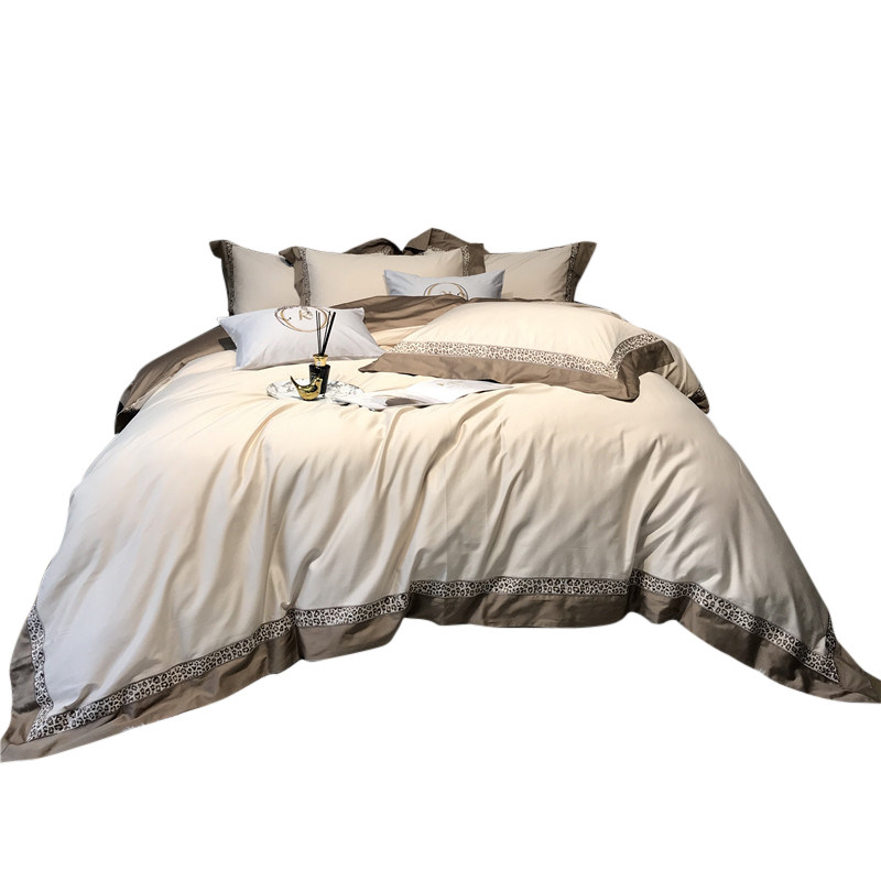 European and American style BAO WEN100 high-end four-piece set 18m bed pure cotton cotton stitching simple atmosphere bedding