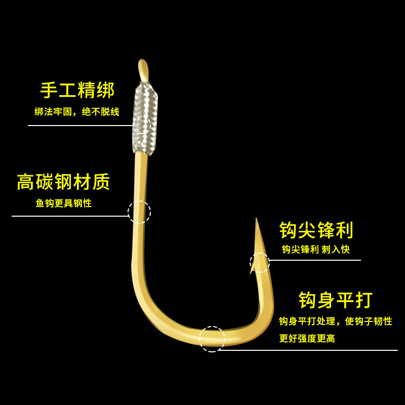 Gold sleeve red sleeve fish hook tied anti-winding sub-line double hook set Finished sleeve hook Taiwan Crucian carp fishing hook Full set of show hooks