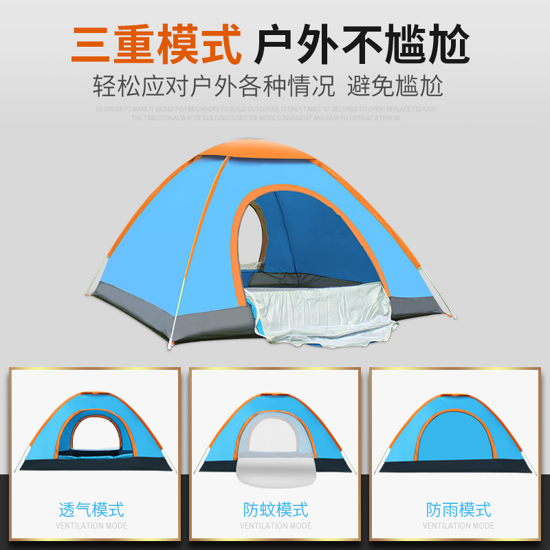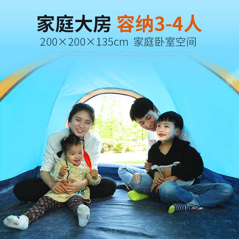 Tent Outdoor 3-4 People Thickened Double 2 Single Fully Automatic Anti-Rainstorm Super Light Camping Wild Outdoor Tent