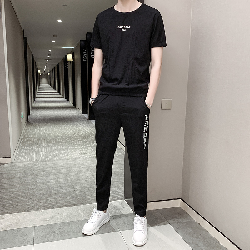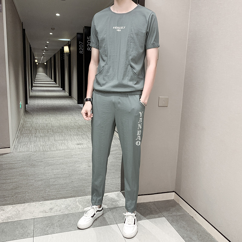 Rich Gui Bird Short Sleeve T-shirt Men Ice Silk Summer New Trend Sports Casual Suit Harbor Wind Two Sets Summer Clothes
