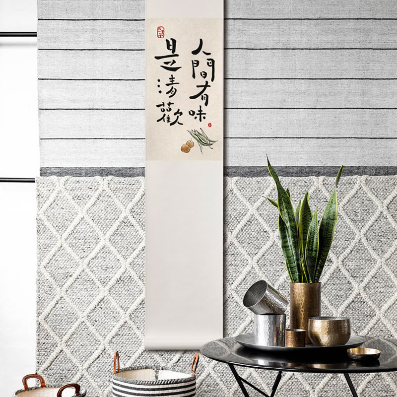 Handwriting hand-painted calligraphy and calligraphy Decorative Painting Scroll Zen hanging paintings The earthly smell is a clear and joyful vertical painting shaft