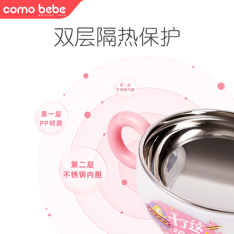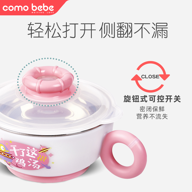 comobbe cute stainless steel Deputy food bowl refreshing double insulation not easy to flap the suction cup bowl