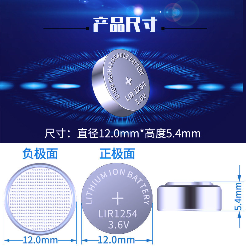 LIR1254 rechargeable button battery 3 6V lithium ion LIR1025 electronic TWS Bluetooth headset