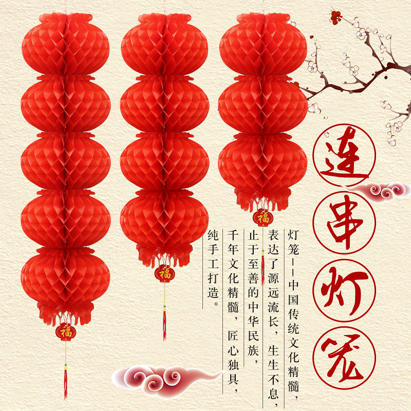 Big red lantern string honeycomb paper lantern Spring Festival lantern festival celebration New Year festive shopping mall decoration lantern string