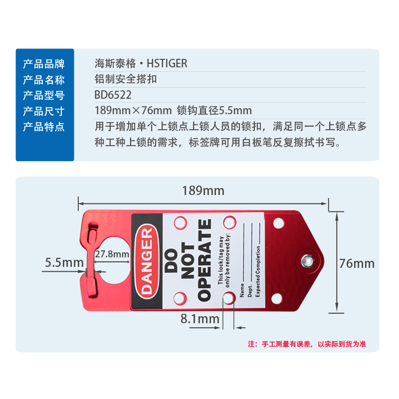 Aluminum joint safety buckle lock 2 inches 6 holes 9 holes multi-person interlocking can write lock hook diameter 5mm5 5mm