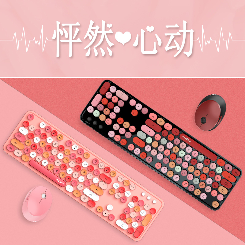 Dazzling wireless keyboard and mouse set high-value girly heart lipstick manipulator feel desktop pink cherry blossom glass film round key retro office typing notebook external game all-in-one