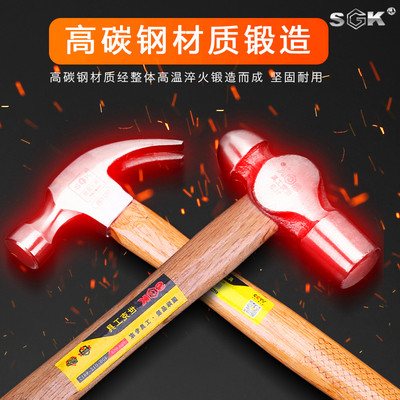 Shike multifunctional claw hammer iron hammer solid one round head octagonal hammer solid wood handle hammer imported pure steel from Germany