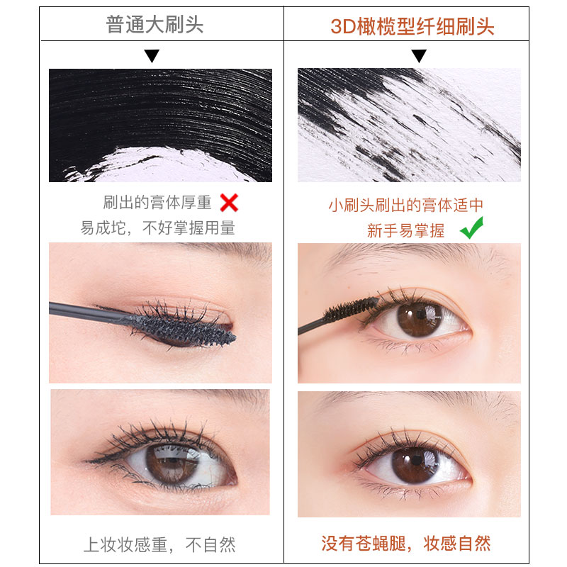 Mascara 01# Black for any occasion Mascara 02# Brown for daily nude makeup Mascara 03# Redbrown Suitable for Heart Makeup Mascara 04# Wild Raspberry