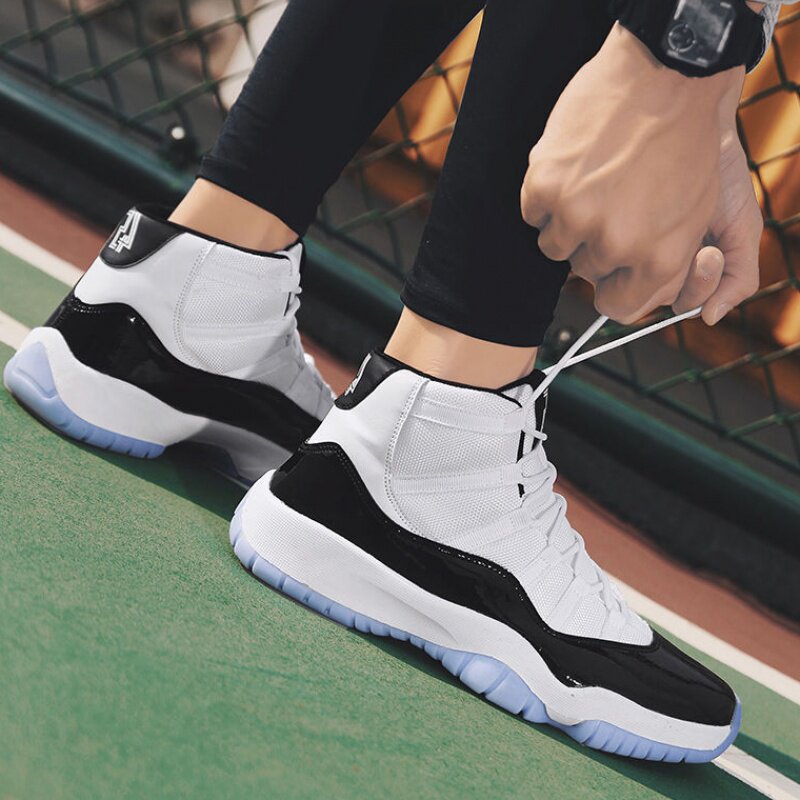 Large size high cylinder shoes men's 45 Air Force One mandarin duck Real combat non-slip basketball shoes 46 shock absorbing sports white board shoes