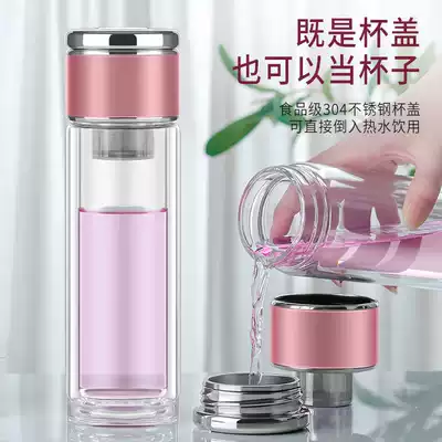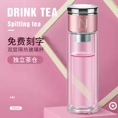 Double-layer tea water separation Cup high-grade water Cup for men and women transparent simple business tea cup portable flower tea glass