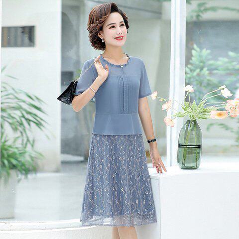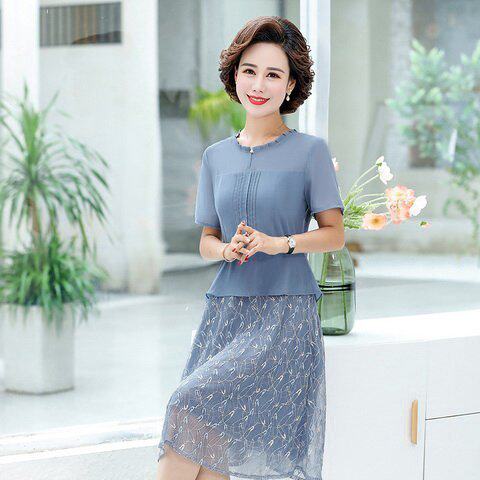 Mother Summer Dress Ocean Dress 2020 New 40 40-Year-Old 50 Middle-aged Women's Clothing Spring Fitting Short Sleeves Noble Skirt