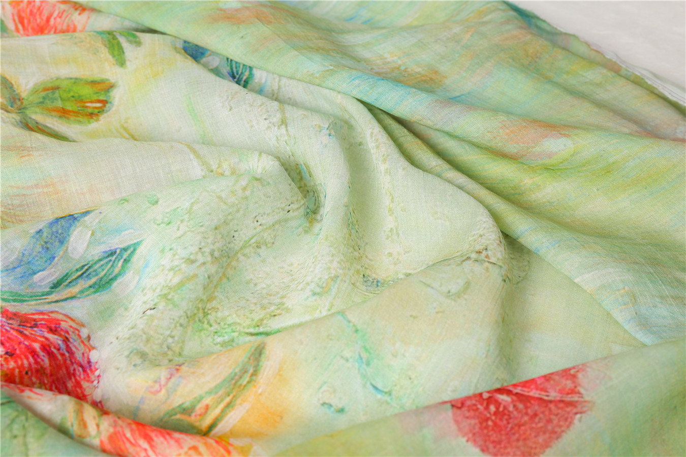 Summer 40% off order fabric, hemp digital printing fabric, dress, robe, fabric, oil painting, positioning flower Cc4