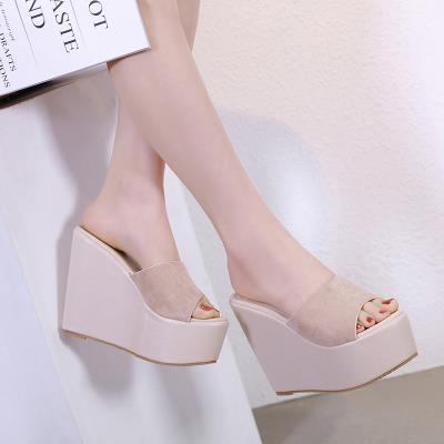 10cm or more autumn sponge cake bottom ultra-high inner sandals 13cm hate sky high wedge heel waterproof platform women's slippers