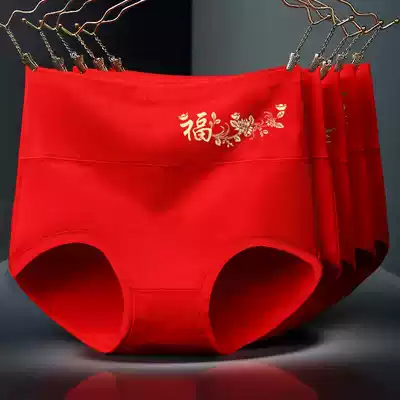 3-pack big red high-waisted panties female destiny year belly lift hips sexy Hongyun wedding large size briefs autumn