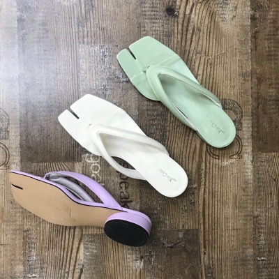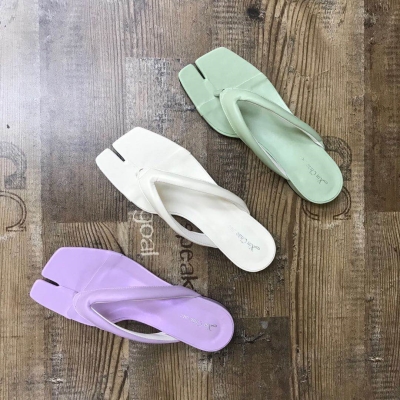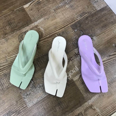 Recommended 2020 summer pig's trotters with toes and square toes herringbone sandals and slippers women's casual clip-on kitten heels with thick heels