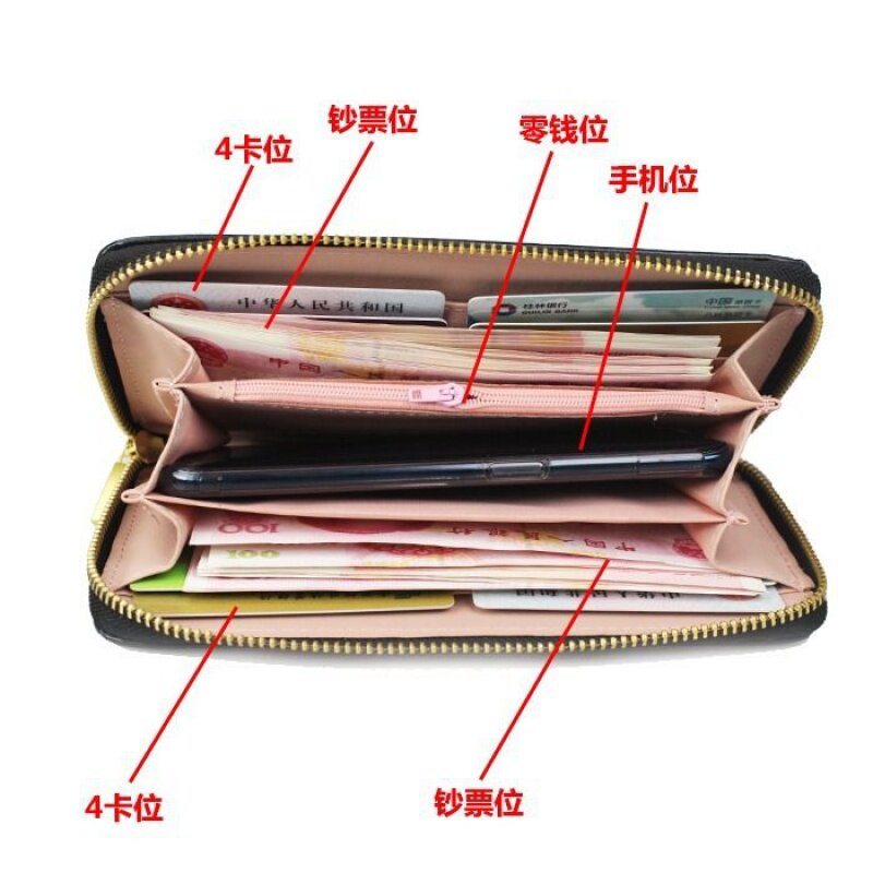 New 2020 Women's Handbag Wallet Women's Long Rose Zippered Large Capacity Money Clip Mobile Phone Bag
