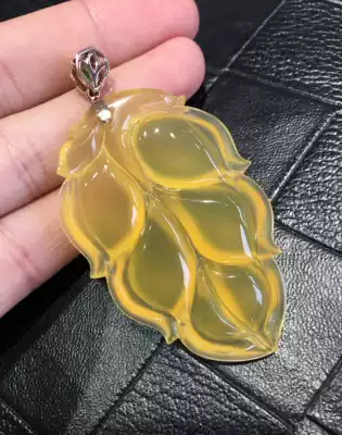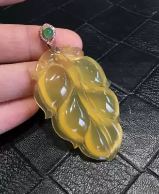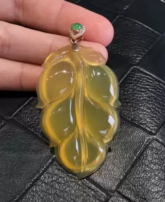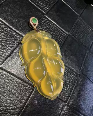 Burmese Topaz inlaid with gold belt head large leaves have Cheng (leaf) pendant