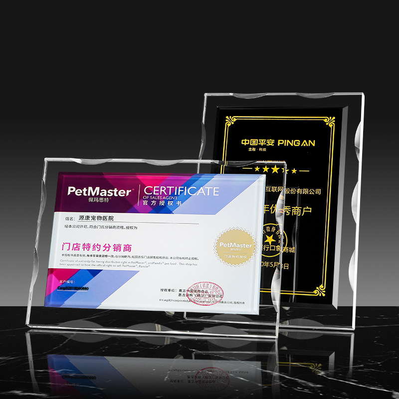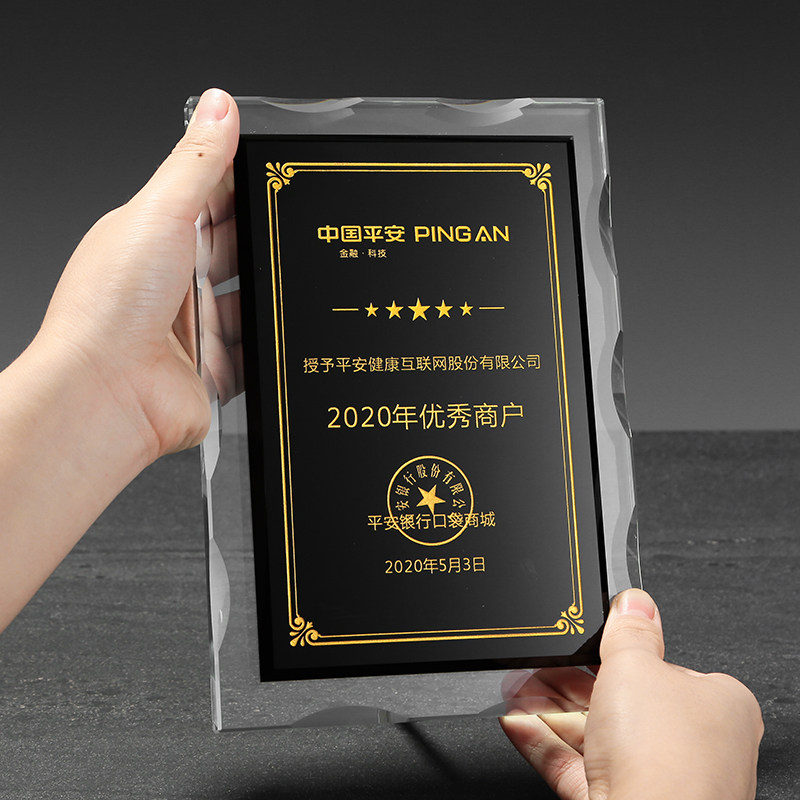 Crystal licensing card Custom custom creative honor trophy plaque book dealer Gold and silver foil agent brand to join