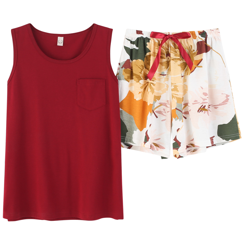 Yu Zhaolin pajamas women's summer cotton vest sleeveless shorts cute little ladies two-piece suit thin home clothes