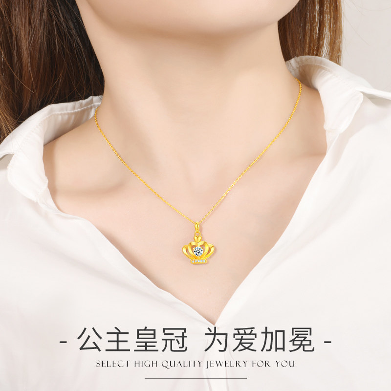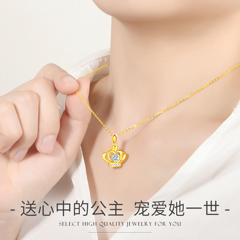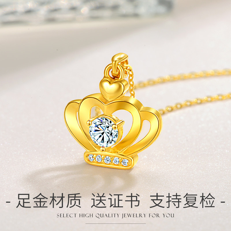New 999 Gold Necklace Female Crown 24K Pure Gold Pendant Clavicle Chain Korean Birthday Gift for Girlfriend