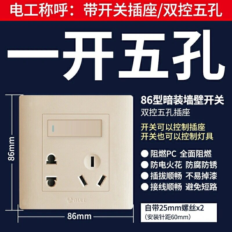 Bull switch socket panel single open double - controlled five - hole two or three plugs with wall - type dark wire 10A power supply