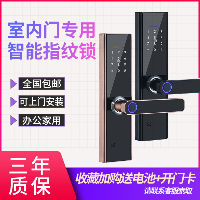 Indoor fingerprint lock houseroom door room room room bedroom solid wooden door password lock monolingtongue electronic smart lock