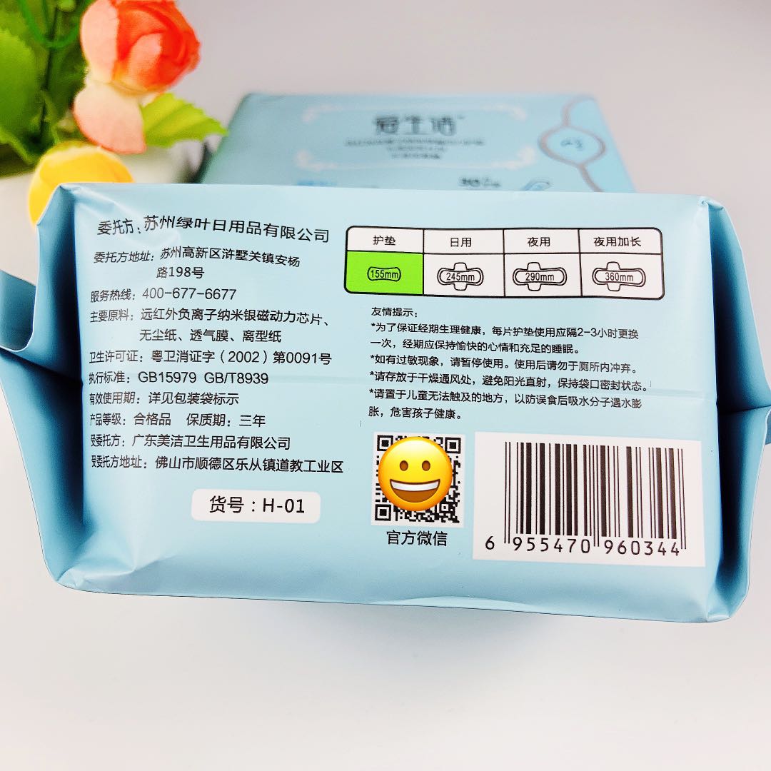 Greenleaf love life pads negative ion nano sanitary pads 2 packs combined soft cotton dry 30 pieces pack 155mm