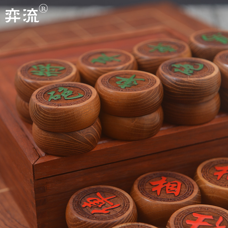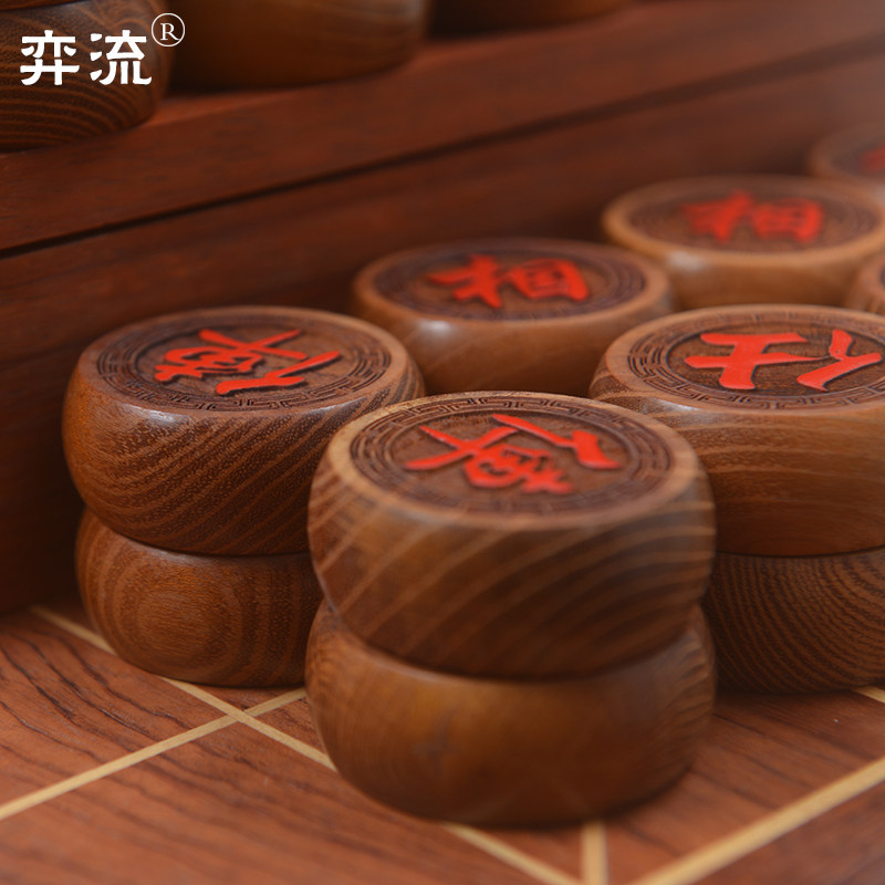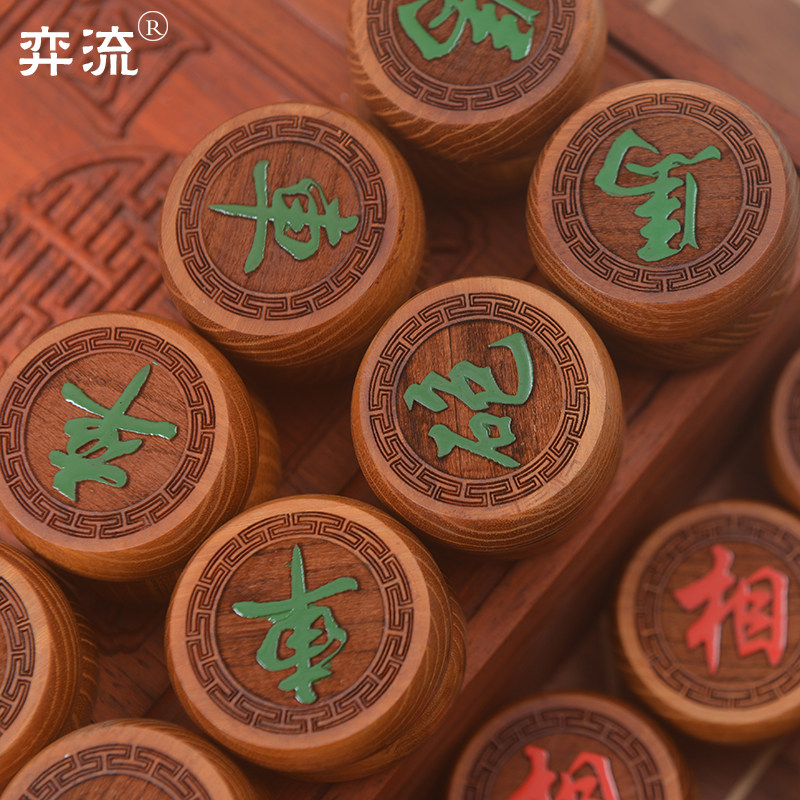 Yiliu 5cm blood dragon wood chess solid wood Chinese chess wooden chess piece mahogany chess box leather chessboard