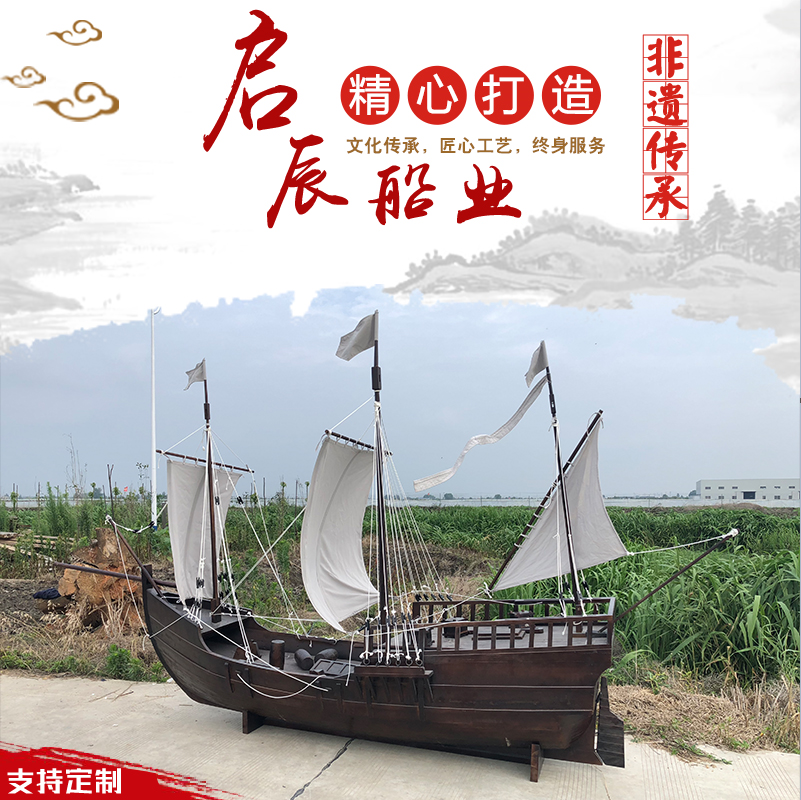 Customized outdoor large pirate boat landscape simulated ancient warship decorated wooden boat wooden fabric