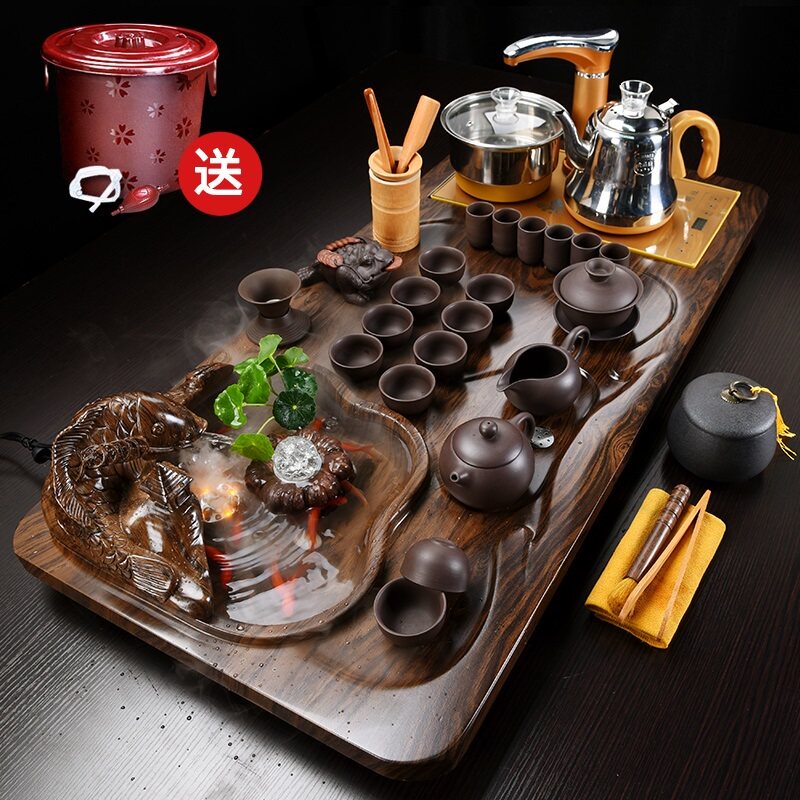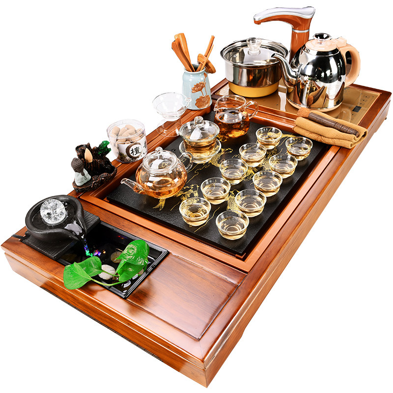 Horse to (frame) glass tea set gold electric incense burner Horse to (frame) high foot purple sand gold electric incense burner running water to make money Glass tea set gold electric incense burner running water to make money