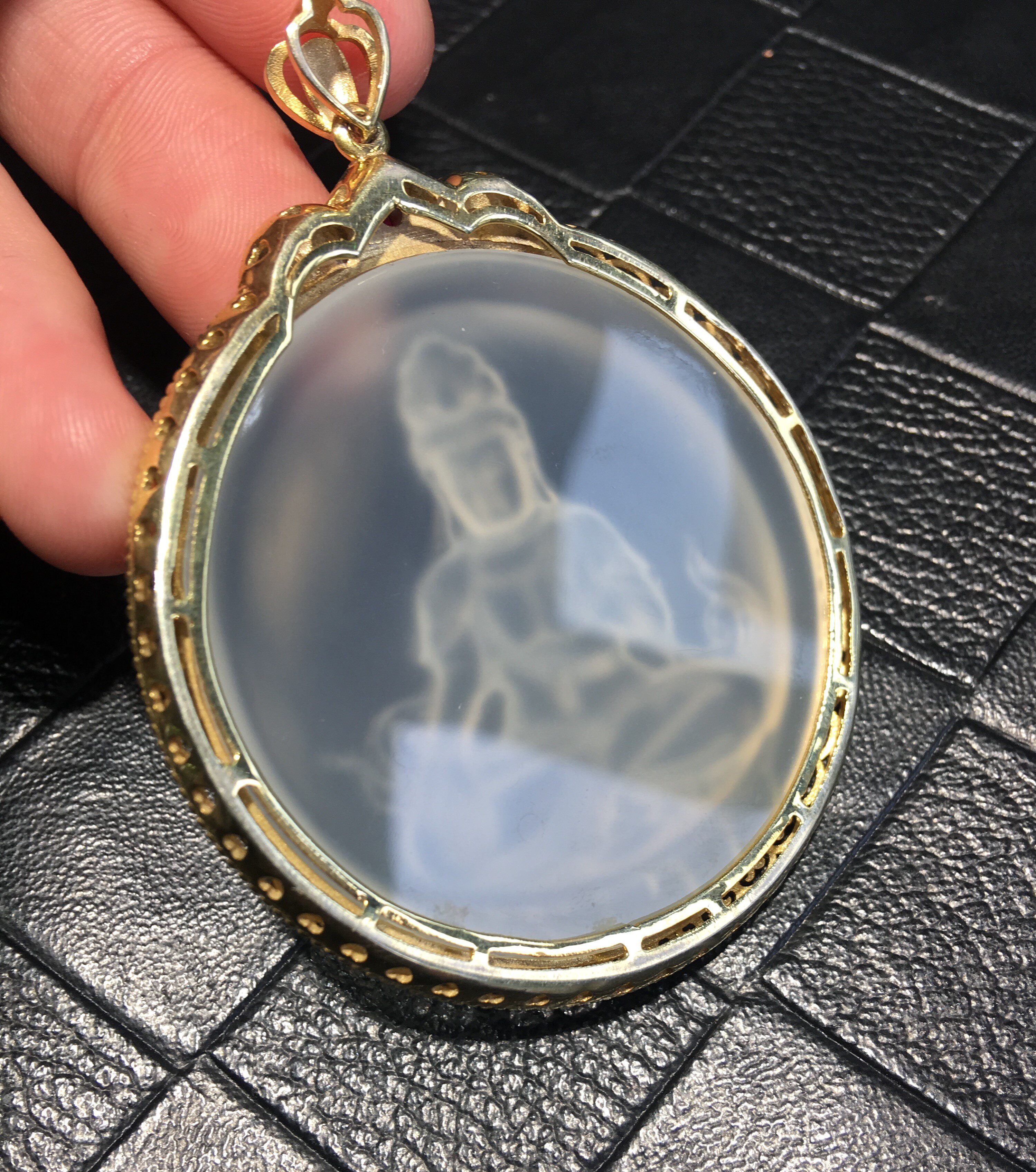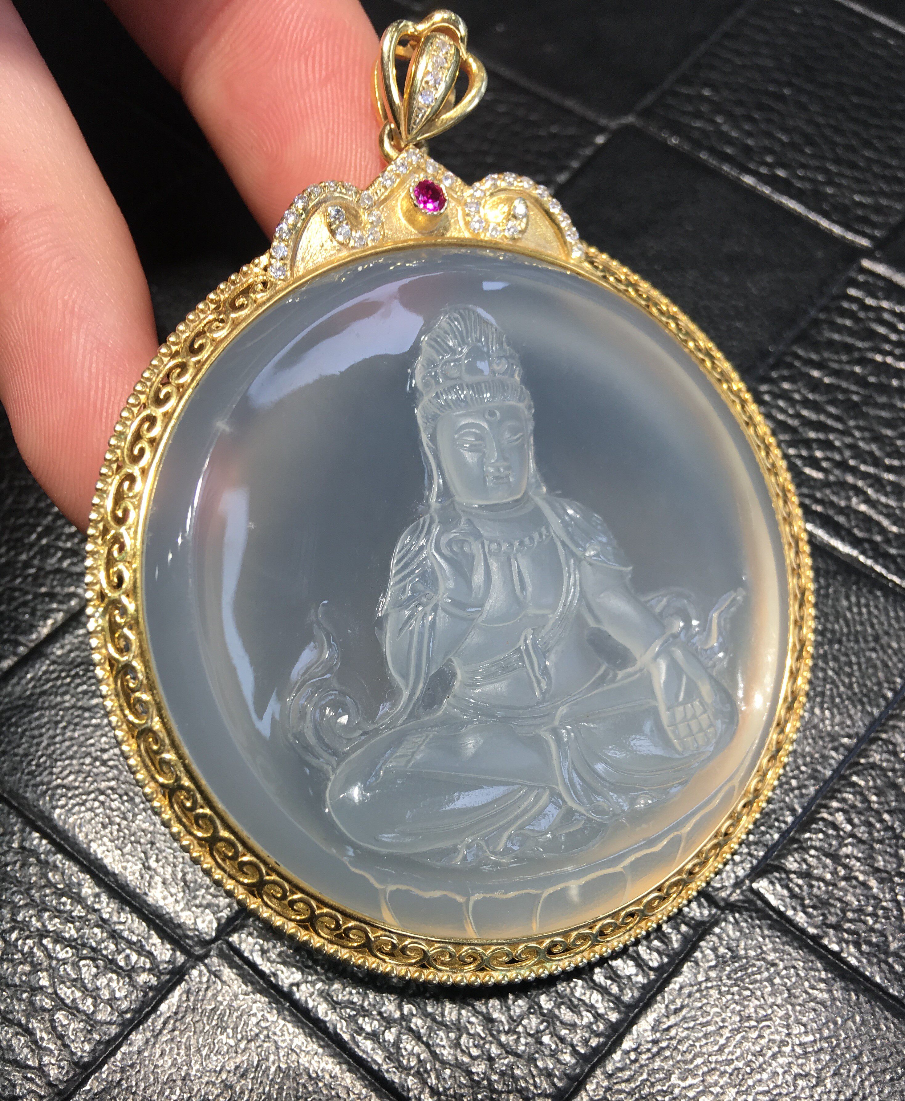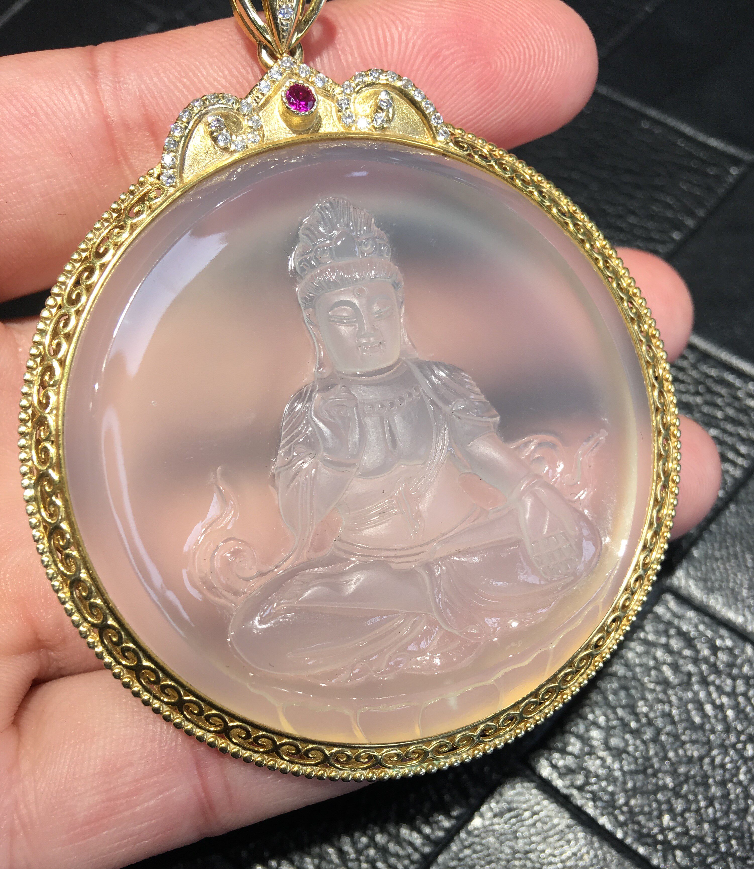 Yunnan Longling natural yellow dragon jade high ice group broken material silver inlaid Guanyin hanging decoration