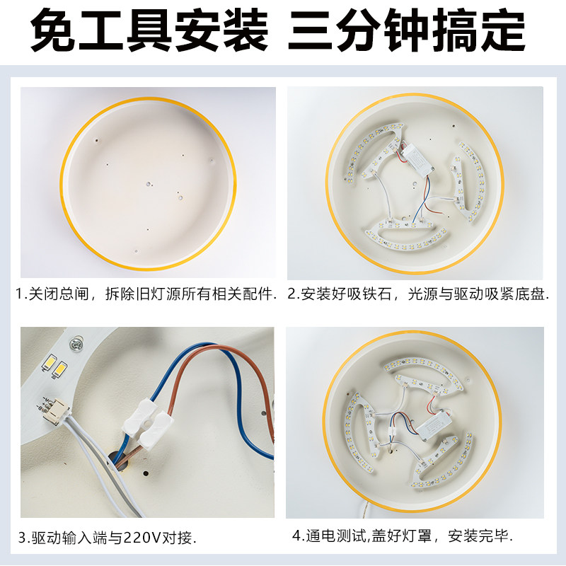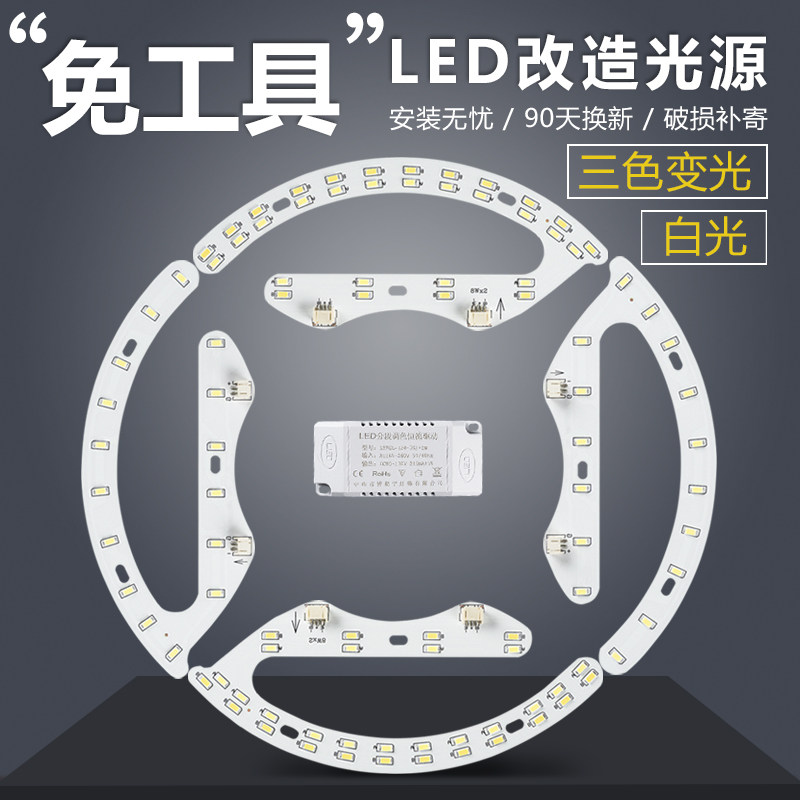 Shaped LED light source round ceiling lamp horseshoe-shaped ceiling fan light board double three-color dimming film white transformation light film