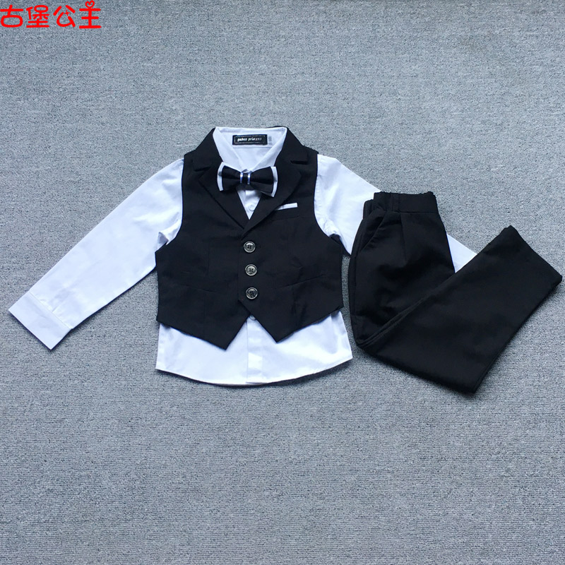 Flower boy boy dress suit autumn trendy suit British children baby children's trousers vest boy costume