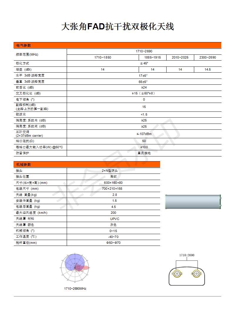Tongyu dual channel outdoor plate antenna 1710-2690 gain 15db high gain base station antenna