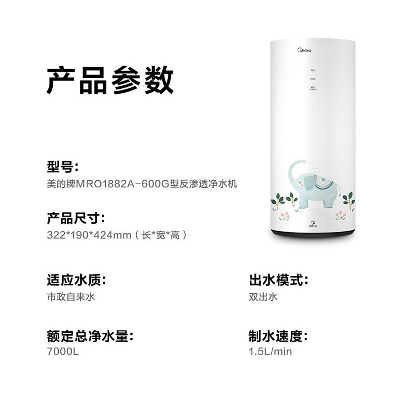 Midea Peanut Water Purifier 400G Single Outlet Water Beauty Peanut Water Purifier 600G Double Outlet Upgrade Small Elephant 400G Single Outlet - 3 Years Long-lasting Membrane Upgrade Elephant 600G Dual Outlet - 3 Years Long