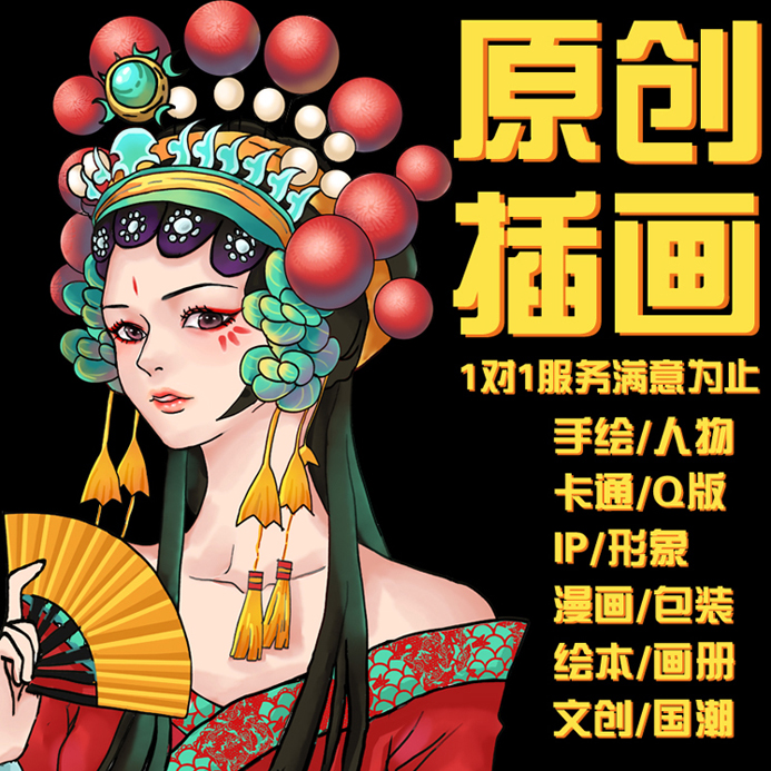 Hand Drawing Illustrator Design Cartoon Q Edition Characters Commercial Cartoon Set Custom Head Portrait Generation Painting of Chinese Tide Plotter