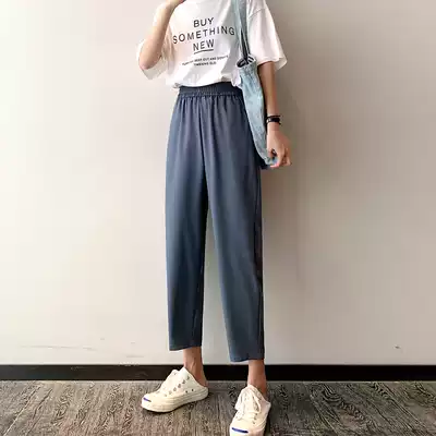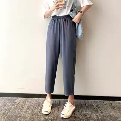 Harem pants women's summer thin section large size loose fat mm nine-point black thin straight granny pants Chiffon ribbed pants