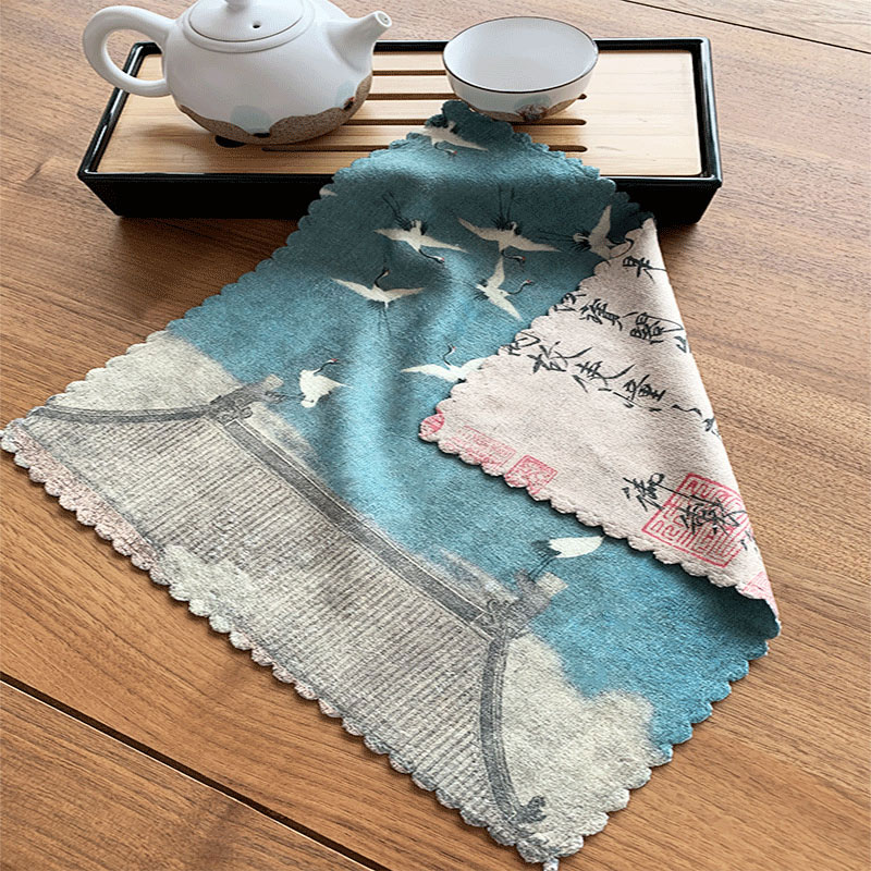 Ruihetu thickened absorbent tea towel Tea cloth Printed tea tablecloth Tea tray Kung Fu tea accessories special towel rag
