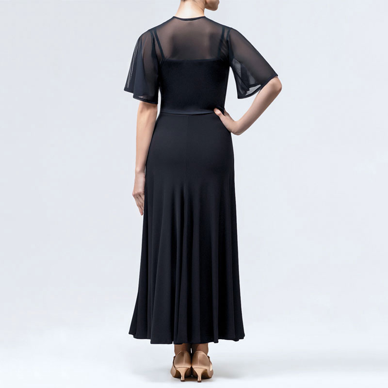 Exotic dance modern dance practice suit new elastic mesh shawl fake two large swing sling dress 2020