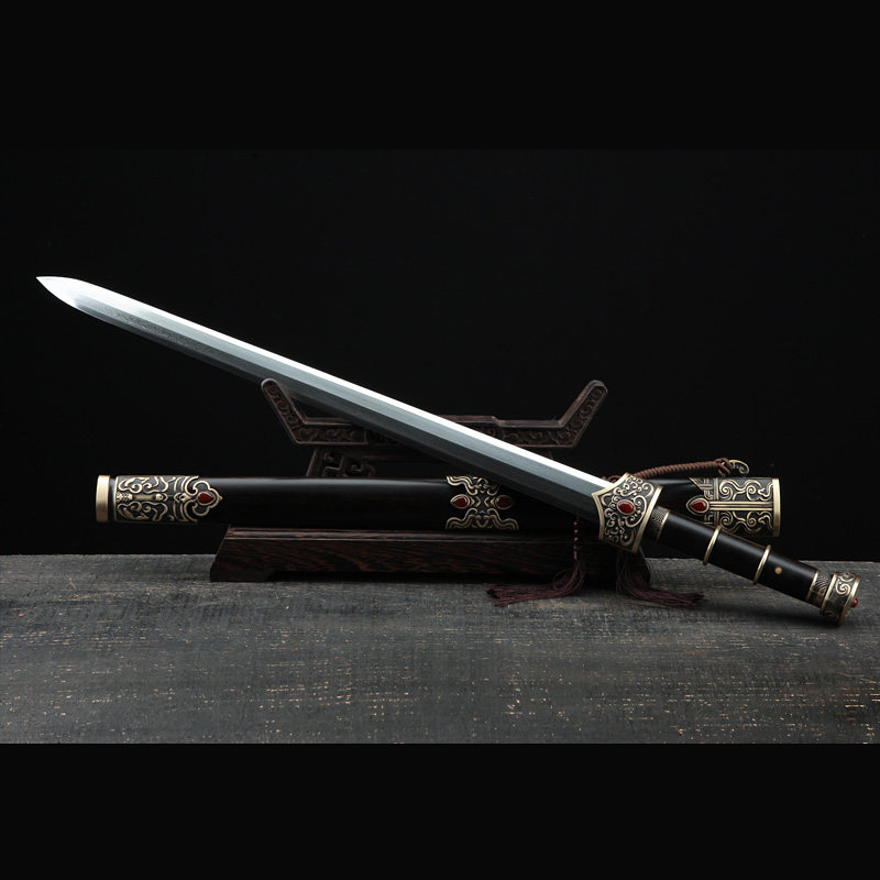 Longquan City Quanjiang sword Zhao Yunjian pattern steel eight-sided Han sword high hardness burning edge sword town house sword not edged
