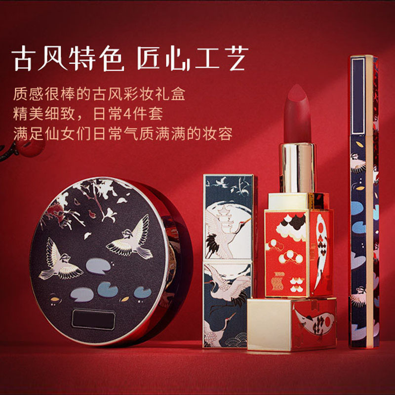 Long-lasting non-smudged eyeliner, non-fading, non-stick cup, non-fading lipstick, female concealer, BB cream, air cushion gift box set