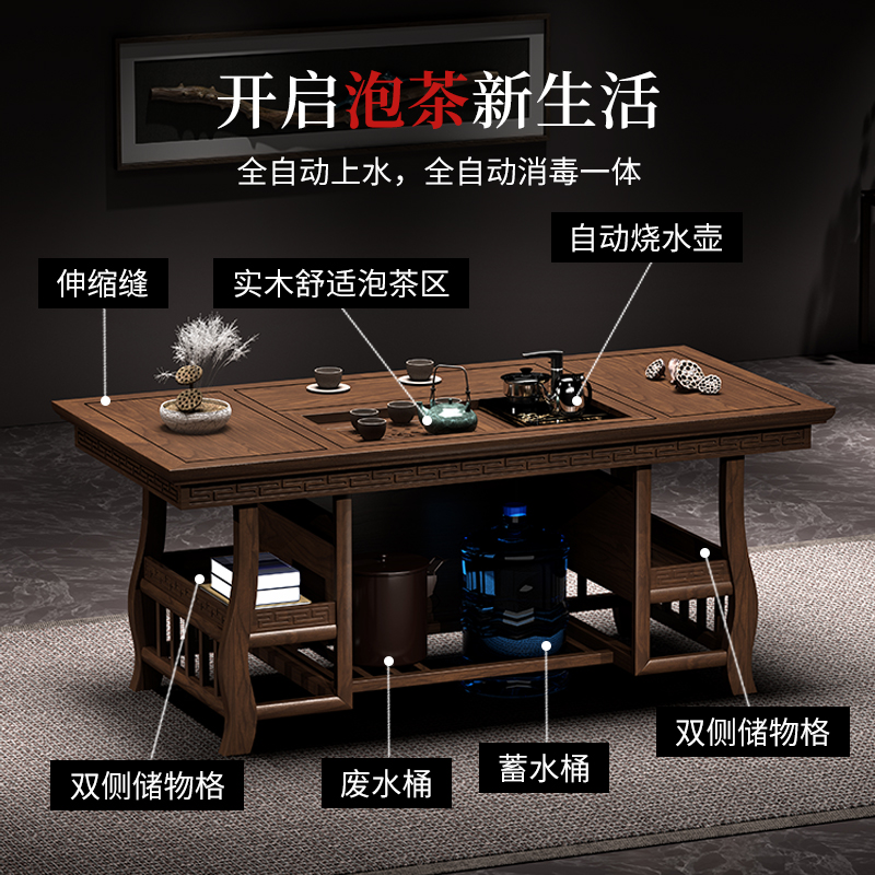 Tea table and chair combination Solid wood household small tea table Kung Fu tea table Simple new Chinese tea table tea set one