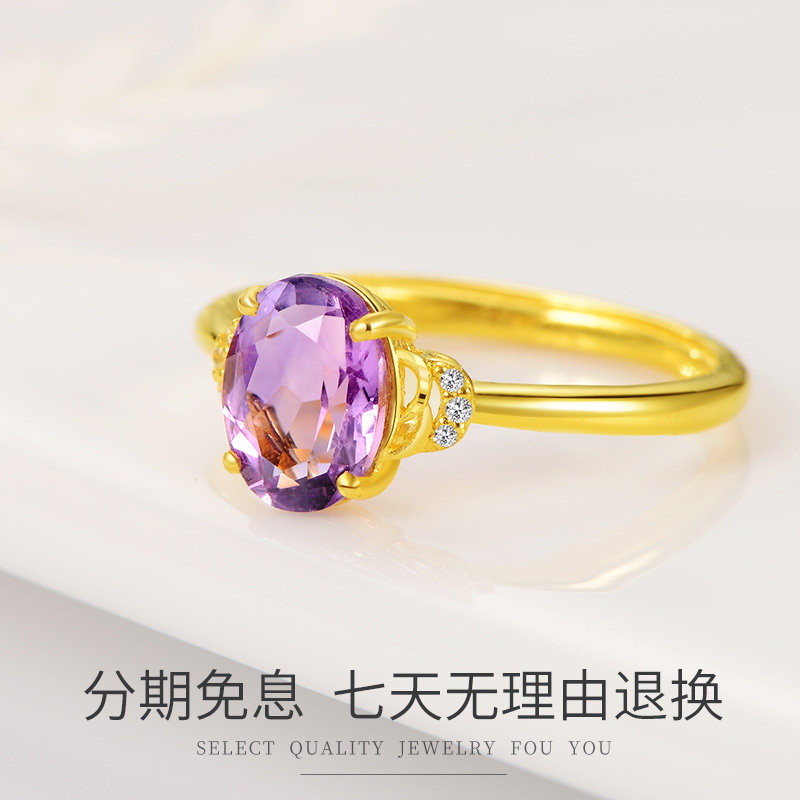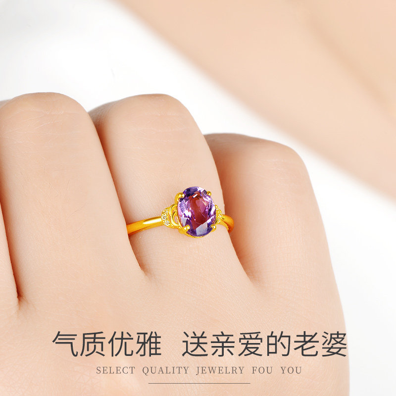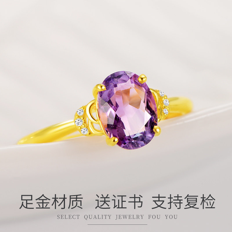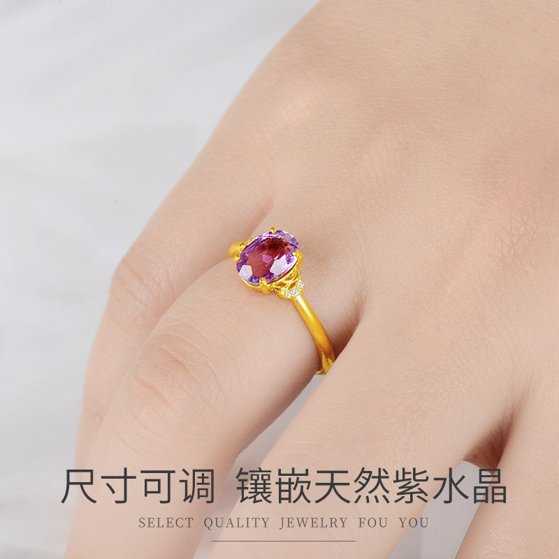 Ou Fushi's new 999 pure gold ring female model 24K natural amethyst jewelry birthday gift