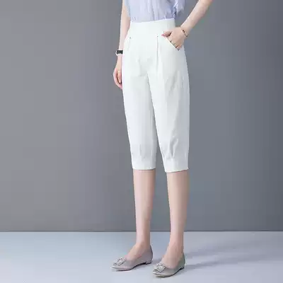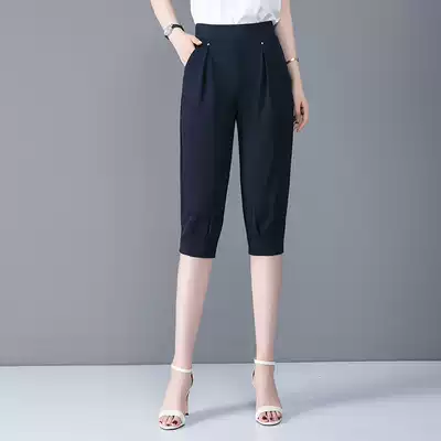 Capri pants female summer thin loose large size elastic waist summer middle-aged mother casual pants Haren pants five-point pants breeches