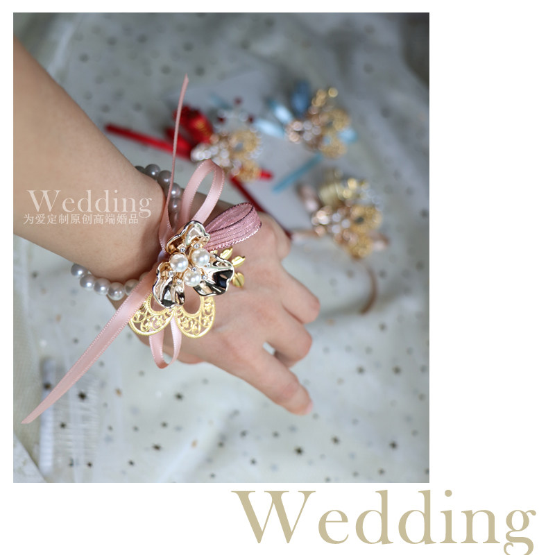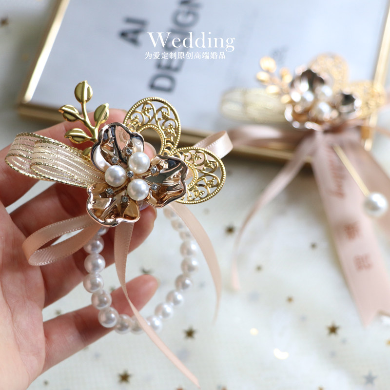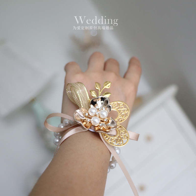 Golden festive wedding wrist flower Bride wedding hand flower Bridesmaid group Wrist flower sister group bracelet Activity hand ornament