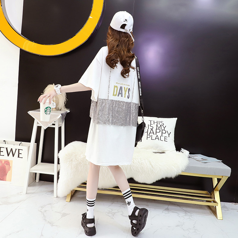 Large size women's clothing youthful Western style design short-sleeved T-shirt skirt mid-length version summer loose two-piece ins T-shirt