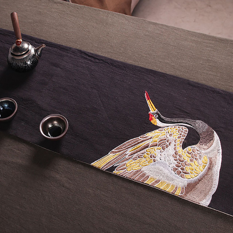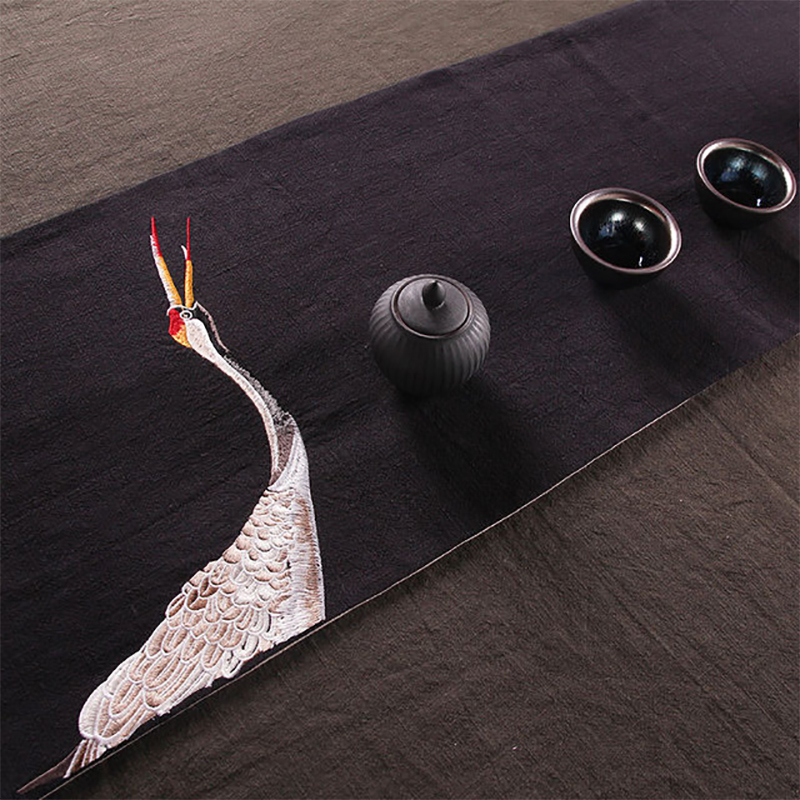 Handmade Zen tea mat, ancient style and wind, crane, pine tree, red-crowned crane, table flag, tea pad, dry foam mat, white crane