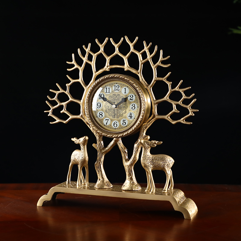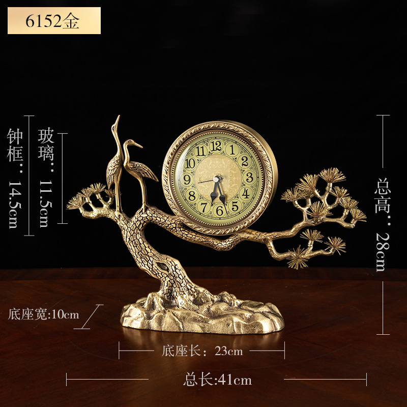 New Chinese brass mute wall clock Home vintage decorative ornament clock creative antique craft sitting clock quartz clock